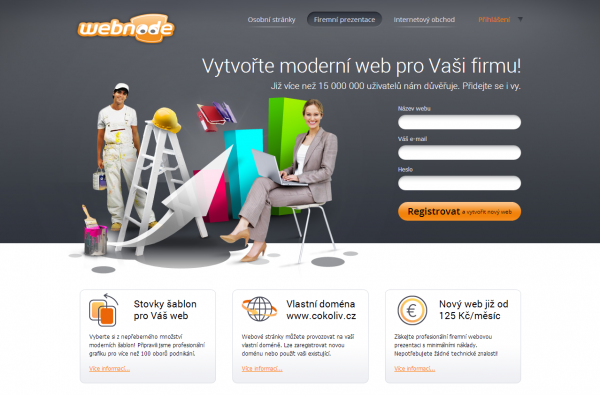 Pokud si chcete zdarma vytvořit firemní web, složitější blog nebo podobnou prezentaci, doporučujeme systém Webnode, který má velmi jednoduché ovládání a nastavení, řadu přednastavených šablon a poskytuje prostor pro stránky na adrese vášweb.webnode.cz